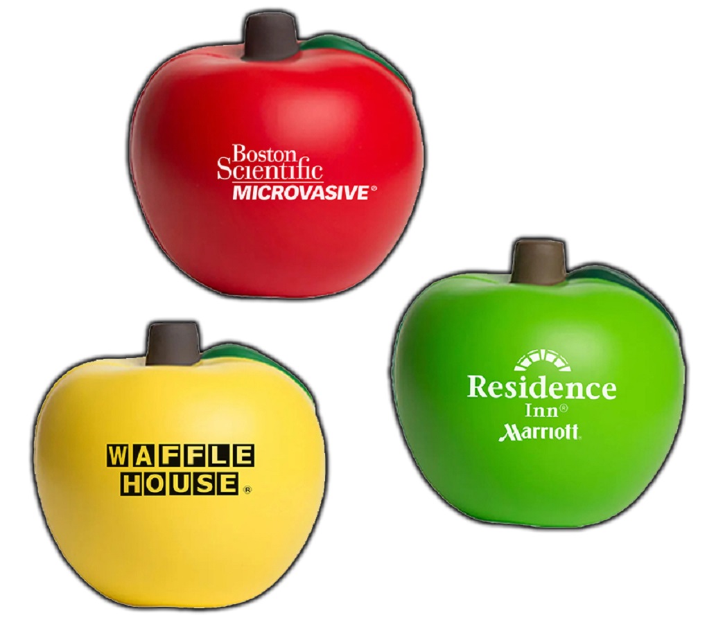 Delightful, soft and squeezable apple shaped stress ball. Therapeutic, this ball is great for relieving mental tension in your body, increase wrist strength, and soothe the mind. Made from high quality pliable polyfoam this ball looks and feels attractive. Imprinted with your logo, this colorful stress ball will be perfect for health events, garden centers, doctor offices, trade shows and other fun giveaways. Diameter 2 3/4" Approximately.